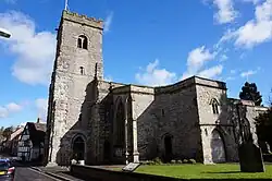 Holy Trinity Church in Much Wenlock, Shropshire, England. Located on Wilmore Street and dating to the early 12th century, it is now a Grade I listed building.