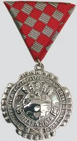 - ^ a b c Croatian Parliament (1995-03-24). "Zakon o odlikovanjima i priznanjima Republike Hrvatske" [Law on Decorations]. Narodne novine (in Croatian) (1995/20). Retrieved 2020-09-28.
