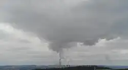 The plant's Unit 3 had a 371 m (1,217 ft) tall chimney, which was built in 1977. Until its implosion this chimney was the third-tallest chimney in the world, the second-tallest in North America, and the tallest in the United States.[19] On clear days, it was possible to spot the chimney from as far south as Greensburg, Pennsylvania, and as far east as Ebensburg, Pennsylvania.
