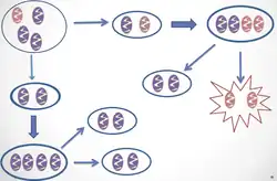 Some research has shown that an inherited heteroplasmic mutation can cause cancer in older age as cells become homoplasmic.[6] In one study, doctors found that a cancer patient's tumor consisted of only homoplasmic cells with mutant mtDNA and that healthy cells in his body were heteroplasmic for mutant mtDNA.[6] Additionally, researchers found that the patient's siblings had the same heteroplasmic mutation. This indicates that the heteroplasmic mutation was inherited, and over time led to homoplasmic cells that caused cancer.[6]