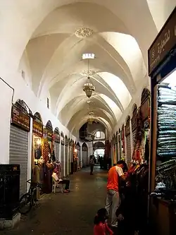 In 1516, Homs was incorporated into the Ottoman Empire and consequently suffered a greater political eclipse, but it continued to thrive as an economic center, processing the agricultural and pastoral products that flowed to it from surrounding districts.[79] By the end of the 16th century, the population had increased to roughly 24,000 people, nearly double what it had been at the time of the Ottoman conquest. About 75% of its residents were Muslims, while 24% residents were Christians and the remaining 1% Jews.[80] Homs was particularly well known for silk and wool weaving, especially the alaja, which was mottled muslin run through with gold threads and used in feminine apparel. This silk was exported as far as the Ottoman capital Istanbul. In addition to weaving industries, there were olive oil presses and water mills for wheat and sesame, while grapes and rice, grown in the surrounding marshlands from the 16th century, were found in abundance in the city's markets. Moreover, the markets of Homs were the center of a trade in livestock, where flocks of sheep and goats coming from Aleppo met camels and cattle moving north from Damascus.[69]