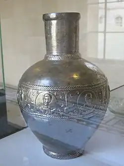 Due to the strength of the pagan sun cult in Emesa, Christians initially did not settle in the city. Eusebius writes that Silvanus, the city's first bishop, had no jurisdiction over the city, but the surrounding villages. He was executed by Emperor Julian and succeeded by Bishop Antonius—the first bishop to settle Emesa.[50] By the 5th century, Christianity was well established under the Byzantine Empire; however, few ancient Christian inscriptions exist in Homs today.[48] Under the Byzantines, the city became an important center for Eastern Christianity.[51] Initially a diocese, Homs was given the status of ecclesiastical metropolis after the discovery of John the Baptist's head in a nearby cave in 452.[48] Nemesius, who lived in the fourth or early fifth century AD, was the bishop of Emesa.[52]