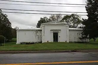 Hope Cemetery and Mausoleum is a historic cemetery and mausoleum located at Newark Valley in Tioga County, New York. It was established as a community burial ground in 1820 and subsequently expanded through a series of additions made between 1866 and 1931. The mausoleum was built of reinforced concrete in the 1920s in a style strongly reminiscent of Greek Revival architecture. It reportedly contains 200 crypts, plus four private rooms containing an additional 22 crypts.[2]