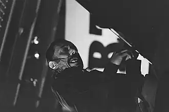 Silver's final recordings with the Jazz Messengers were in May 1956.[37] Later that year, he left Blakey after one and a half years,[34][38] in part because of the heroin use prevalent in the band,[2] which Silver did not want to be involved in.[39] Soon after leaving, Silver formed his own long-term quintet, after receiving offers of work from club owners who had heard his albums.[40] The first line-up was Mobley (tenor saxophone), Farmer (trumpet), Watkins (bass), and Louis Hayes (drums).[40] The quintet, with various line-ups, continued to record, helping Silver to build his reputation.[41] He wrote almost all of the material the band played;[41] one of these, "Señor Blues", "officially put Horace Silver on the map", in the view of critic Scott Yanow.[42] In concert, Silver "won over the crowds through his affable personality and all-action approach. He crouched over the piano as the sweat poured out, with his forelock brushing the keys and his feet pounding."[2]