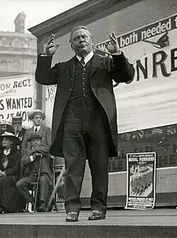 ![]() Bottomley addressing a WWI recruiting rally in Trafalgar Square, London, September 1915 | |