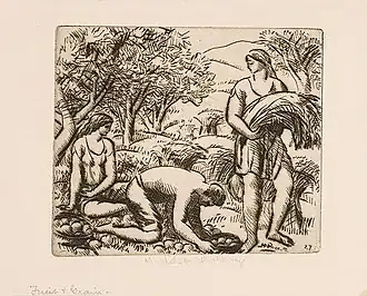 Fruit and Grain, drypoint by Horatio Nelson Poole, 1927