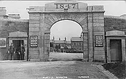 The barracks were built, largely in response to the Bristol riots of 1831, and completed between 1843 and 1847.[1] During the Crimean War a mutiny took place and in 1868 a sergeant murdered a private soldier in a dispute over money.[1] In 1873 a system of recruiting areas based on counties was instituted under the Cardwell Reforms and the barracks became the depot for the 28th (North Gloucestershire) Regiment of Foot and the 61st (South Gloucestershire) Regiment of Foot.[2] Following the Childers Reforms, the 28th and 61st regiments amalgamated to form the Gloucestershire Regiment with its depot in the barracks in 1881.[2] The 3rd Battalion (Royal South Gloucestershire Militia) of the regiment also established itself at Horfield Barracks.[1]