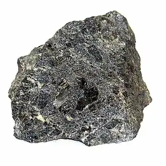 Hornblendite is a plutonic rock consisting mainly of the amphibole hornblende. Hornblende-rich ultramafic rocks are rare and when hornblende is the dominant mineral phase they are classified as hornblendites with qualifiers such as garnet hornblendite identifying a second abundant contained mineral.
