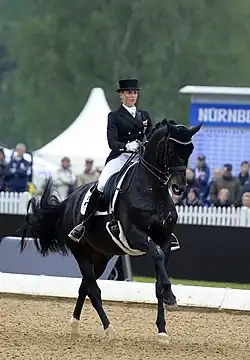 Each year, Germany hosts approximately 3,600 equestrian events featuring 69,000 different competitions. Additionally, 2,400 German horses possess passports from the International Federation for Equestrian Sports and therefore compete internationally;[4] German dressage riders have won numerous prizes worldwide.[5]