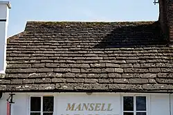In later centuries there are numerous examples in Sussex and the surrounding counties as a roofing material, particularly for mills, dovecotes, churches, manor houses and similar buildings. Completely rainproof and long-lasting, it was ideal for these structures.[2] Smaller-scale uses include road surfaces, for which the thickest slabs were typically used:[2] the footpaths leading to St Mary's Church at Shipley, the north wall of St Nicholas' Church at Itchingfield, and gravestones, fonts and tombs with examples at St Mary the Virgin's Church in Horsham and St George's Church, West Grinstead.[1] Once exposed it hardens quickly and will last for hundreds of years. The characteristic ripple marks are retained. There are redundant quarry workings throughout Sussex but just one working quarry in 2024. Large quarries at Nuthurst, and Stammerham in Southwater, are no longer extant but others survive in isolated Wealden settings.[2]
