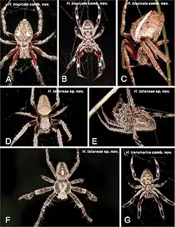 - ^ Framenau, V. W.; Baptista, R. L. C.; Oliveira, F. S. M.; et al. (2021). "Taxonomic revision of the new spider genus Hortophora, the Australasian garden orb-weavers (Araneae, Araneidae)". Evolutionary Systematics. 5 (2): 275–334. doi:10.3897/evolsyst.5.72474.