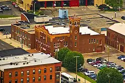 A hose tower and annex building is a feature of a National Historic Landmark district in Greendale, Wisconsin.[4]