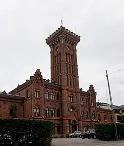 A hose tower is a structure constructed for hanging firehoses to dry. Hose towers have been features of some fire station designs in Canada,[1] Germany,[2] and the United States.[3] The purpose of such towers was to hang and dry canvas hoses, slowing the deterioration caused if the hoses were not dried thoroughly.[3] Fire stations can also have towers for other purposes: a clock tower or bell tower or drill tower for firemen to practice. In Australia, especially, some fire stations had watch towers for looking for smoke, presumably in relatively flat areas and in spread out low towns where an extra story or two of elevation provided for an extremely wide range of vision, perhaps 360 degrees. Before radio/telephone communications, in the U.S. and Australia and elsewhere, fire lookout towers were also sited on mountain tops or other remote locations with wide views, later, when radio/telephone communications were possible.