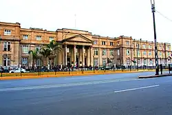 The construction of the hospital began on May 25, 1915, under the first government of Óscar R. Benavides, who laid the first stone. At that time, the site was the limit of the city, on the route of the former Walls of Lima, demolished in 1871.[8] It was inaugurated after a significant delay on December 11, 1924, under the government of Augusto B. Leguía, being baptized with the name of the Arzobispo Loayza Women's Hospital, in honor of its colonial founder.[6] All staff and equipment from the old Santa Ana hospital were transferred to the new headquarters.[6] The administration was left to the Daughters of Charity of Saint Vincent de Paul. Its first administrative superior was Sister Rosa Larrabure, who carried out important social work; She was also the first director of the National School of Nursing.[5] The first medical director of the hospital was the surgeon Juvenal Denegri.[5]