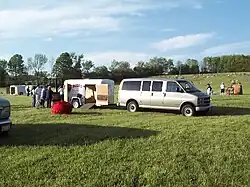 Sometimes, a chase vehicle may be equipped with a trailer, which can provide more room at the cost of being more difficult to maneuver. A pickup truck or van by itself can be more maneuverable but at the cost of squeezing all the equipment, crew, pilot, and passengers into a single vehicle. Many chase vehicles are fitted with a cargo liftgate to aid in loading heavy equipment into the cargo space (the envelope itself can weigh 250 lbs or more).