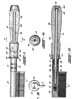Walter Sammons of Philadelphia filed an application for Patent No. 1,362,823 on April 9, 1920. The patent was granted on December 21, 1920.[17] Poro Company founder Annie Malone has been credited by some sources with receiving the first patent for this tool in that same year but the Official Gazette of the U. S. Patent Office does not list her as a holder of a hot comb patent in 1920.[18]