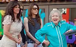 Hot in Cleveland has been referred to as a modern spin on the classic 1980s television series The Golden Girls, which also featured actress Betty White in a starring role. Craig Berman of Today stated that the show is "as close as we're likely to get to a repeat of White's 1980s ensemble comedy hit, The Golden Girls ... [TV Land] the network known as the refuge for people looking to fall asleep to reruns of shows from their childhood has made its first scripted program a modern version of the classic sitcom premise."[37] Alessandra Stanley of The New York Times commented: "This is the first original scripted comedy on TV Land, a network that was founded on reruns. So not surprisingly, Hot in Cleveland is a pastiche of classics – a little bit Cheers and Frasier, a little bit The Golden Girls."[38] Michael Musto of The Village Voice wrote: "Tart-tongued Wendie Malick is basically the modern-day Bea Arthur. Sweet-faced Valerie Bertinelli is the new Betty White. Been-around Jane Leeves is the nouveau Rue McClanahan. And witheringly sarcastic Golden Girl Betty White has turned into Estelle Getty."[39]