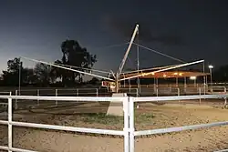 A hot walker within the practice of horse management is a person such as a groom or stable worker who hand walks hot, sweaty horses after a workout, particularly after work on a racetrack.[1] The term hot walker may also refer to a mechanical device designed for the same purpose.[2]