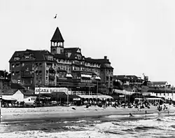 Named in honor of Arcadia Bandini de Stearns Baker,[5] the five-story hotel built by Jesup W. Scott[6] had “glass observatories” facing the beach.[7] At the time of its completion it was considered the “finest seaside hotel” in the state, comparable only to the Del Monte in Monterey.[6] A history of early Southern California resorts described it as a “summer society capitol.”[8]