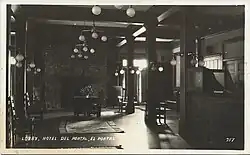 The hotel was a four-hour ride from Merced via a railway coach.[4]