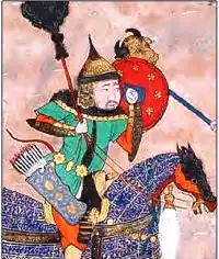 Houmān (Persian: هومان)[1] (alt. spellings include Hōmān, Humān and Hoomān) is one of the most famous Turanian heroes in Shahnameh, the national epic of Greater Iran. Houmān is famous for his bravery, loyalty, and chivalry, such that even Iranians who are longtime enemies of Turanians admire his personality. He is a descendant of Tur, a son of Viseh and brother of Piran. Houmān is the highest ranking Turanian commander and after Piran, he is the second leading member of Viseh clan. Human first appears in the story of Rostam and Sohrab, where Afrasiab sends him with an army of 12,000 men to accompany Sohrab in his journey to Iran. He has been instructed by Afrasiab to not let Sohrab recognize his father, Rostam, so that they fight together and one of them kill the other. Rostam on the deathbed of Sohrab, agreed to promise that he would not hurt Houmān and his army.[1]