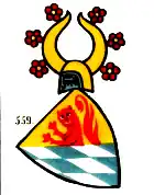 There are various theories about the exact origins of the Lords of Rötteln. They were certainly named after the hamlet of Rötteln, whose parish church was mentioned in documents as early as 751, long before the noble family. The name Rötteln is a shortening of Raudinleim and refers to red clay. The first landowner to appear in the Rötteln area was the abbey of Saint Gall.[44] However, where and how exactly the Röttler noble family came to its position of power in the Rhine bend is disputed. On the one hand, it is assumed that the Röttler originally came to southern Breisgau from central Swabia with the Zähringen dynasty and descended from a family that was wealthy near Weilheim an der Teck.[45] On the other hand, they could also have been a local family of bailiffs who rose to knighthood.[46] However, the Röttler lords are consistently referred to in the sources as "lords" (domini) or "noblemen" (nobiles viri).[4]