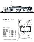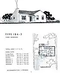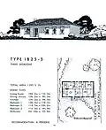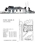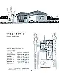 To these were added a set of "mirror image" plans, and further variety was achieved by specifying different roofing materials: tiles, of either cement or terracotta, or corrugated sheets, of either galvanized iron or asbestos cement. Most houses were built of brick, the outer walls being of cavity construction with the outer skin either brick or Mount Gambier stone.[5]