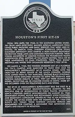 - ^ "TSU students recreate first sit-in in Houston in 1960". March 5, 2016.