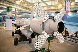 The Hoveyzeh (Persian: موشک کروز هویزه) is an Iranian designed and built, all-weather, surface-to-surface cruise missile.[1][2] The Hoveyzeh is from the Soumar family of cruise missiles.[3] The missile was unveiled at a defense exhibition in Tehran on 2 February 2019 during celebrations of the 40th anniversary of the 1979 Iranian Revolution.[1] The Aerospace force of the Islamic Revolutionary Guard Corps will acquire and be supplied with these missiles.[2]
