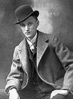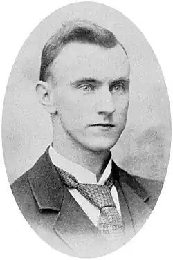 Swisher spent his early years and adolescence on his father's farm, until he became a schoolteacher in Hampshire County at the age of 18.[3][5][7] He began his post-secondary education at Fairmont State Normal School (present-day Fairmont State University) in Fairmont, which he graduated from in 1892.[3][7][8] While enrolled there, Swisher became affiliated with the Mu Mu chapter of the Sigma Chi fraternity.[4] Following his graduation, he traveled throughout the northwestern United States and the Canadian provinces and territories of Alberta, Assiniboia, British Columbia, and Manitoba.[5][7] Swisher then moved to Fresno, California, where he worked as a public schoolteacher for two years.[4][5][9] He then returned to West Virginia and attended West Virginia University in Morgantown.[1][4][5] While at the university, he aspired to become a journalist and edited The Athenaeum, the institution's official student newspaper.[5][9][10] In 1897, after three years of studies, Swisher graduated from the university with a Bachelor of Arts degree.[5][9]