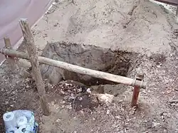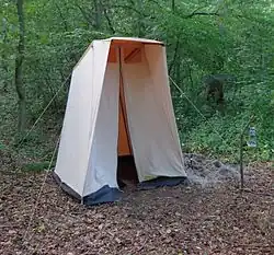 A hudo is a temporary pit toilet in a camp, covered with a tarpaulin, not a permanent outhouse. The name is in common use in Dutch and Belgian scouting, and has international usage.