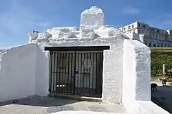 By the early 21st century the structure had been damaged by exposure to wind and rain.[7] The structure's owner, Cornwall Council, now leased to Newquay Town Council, with funding from a campaign headed by local man Jon Goodman who ran a Crowdfunding campaign including a £8,000 contribution from television presenter Phillip Schofield who grew up in Newquay, undertook restoration works after public pressure.[7] These were completed on 19 December 2014 at a total cost of £30,000.[4][7] The money left over from the crowdfunding campaign has been used to pay for ongoing maintenance.[7] Funding was also received through small change which was tossed through the openings of the structure. This change has been stolen through the use of fishing nets and in October 2016 the gate lock was broken to gain access to the money.[8]