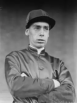 David Hugh "Darby" "the Demon" "Brown Bomber" Munro (5 March 1913 – 3 April 1966) was also born in Caulfield. He was educated at Marist Brothers' College, Randwick, and served his apprenticeship as a jockey with his brother John. He trained with Hugh from age 10 and soon became one of the best jockies of his age.[1] By another account, Munro was born on 23 March 1913 in Melbourne but grew up in Sydney, and was "discovered" by prominent Randwick trainer Jeremiah "Jerome" Carey (c. 1867 – 6 February 1952), and in 1925 or 1926 taken to Melbourne where he gained some experience riding Carey's horse Bicolor. This same article asserts that Darby got his jockey's ticket as his father's apprentice, but his first race was on Carey's Karuma in a Tattersall's Two-year-old Handicap on 21 May 1927, and was beaten by a horse named Rosso.[7] Munro came into prominence in May 1927 when he won the Prospect Handicap on Release, beating his famous brother Jim on Quixotic. Later that same day he won the May Handicap on Spring Days. His services were soon in demand by such famous trainers as Jackson "Jack" Holt "the Wizard of Mordialloc" (c. 1880–1951), Bailey Payten (c. 1896 – 9 September 1948),[8] and Peter Riddle (c. 1885 – 29 June 1947).[9]