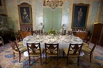 Huis Doorn opened its doors as a historic house museum in 1956.[1] It is presented just as Wilhelm left it, with marquetry commodes, tapestries, paintings by German court painters, porcelains and silver. The collection also includes Wilhelm's collections of snuffboxes and uniforms that had belonged to Frederick the Great.[23]
