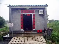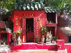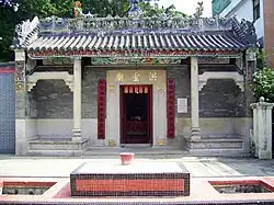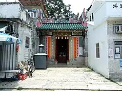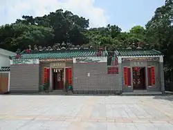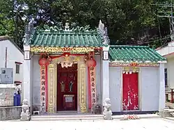 Ba Kong Temple (把港古廟; 'guarding the bay').[28] Built in 1774.[29] It is located to the right of the Tin Hau Temple, built in 1919. A wall is connecting the two temples at the front façade.[30] (Viewed from the front, the Hung Shing Temple is on the left) |
