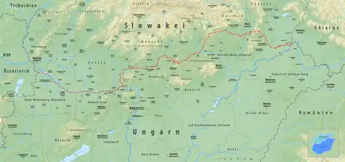 The border between the Hungary and Slovakia (Hungarian: magyar–szlovák államhatár; Slovak: Maďarská-slovensko štátne hranice) is the international border between Hungary and Slovakia. It forms a 679 kilometres (422 mi)[1] arc extending from the tripoint with Austria at the west to the tripoint with Ukraine at the east.