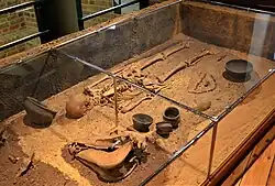 In the 18th century, French scholar Joseph de Guignes became the first to propose a link between the Huns and the Xiongnu people, who lived in northern China from the 3rd century BC to the late 1st century AD.[3] Since Guignes's time, considerable scholarly effort has been devoted to investigating such a connection. The issue remains controversial, but recent archaeogenetic studies show some Hun-era individuals to have DNA similar to populations in ancient Mongolia.[4] Their relationships with other entities, such as the Iranian Huns and the Huna people of South Asia, have also been disputed.