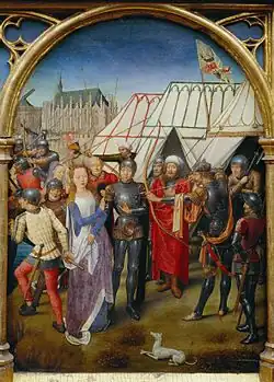Raphael's The Meeting between Leo the Great and Attila depicts Pope Leo I, escorted by Saint Peter and Saint Paul, meeting with the Hun emperor outside Rome