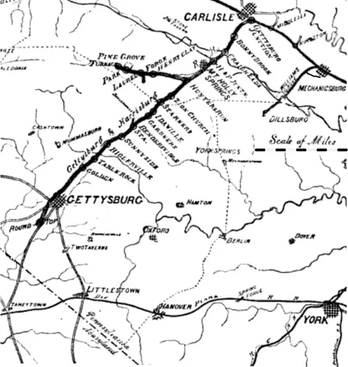 ![]() The HJ & SB RR connected to the Gettysburg and Harrisburg at the Hunter's Run junction. | |