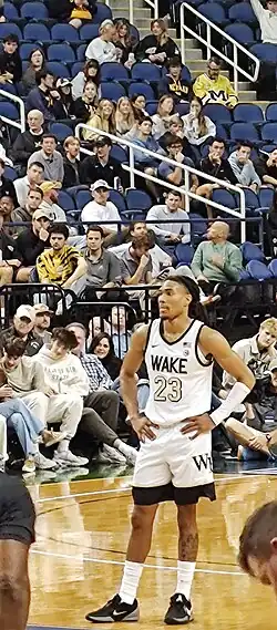 After two seasons at Gonzaga, he transferred to Wake Forest.[13] On November 29, 2023, Sallis scored 24 points and 4 assists in a 82-71 win against Florida.[14] On December 30, 2023, Sallis scored 20 points and 9 rebounds in a 86-63 victory over Virginia Tech.[15] On January 2, 2024, Sallis scored 21 points and 3 assists in a 84-78 win over Boston College.[16] On January 13, 2024, Sallis scored 21 points and 9 rebounds in a 66-47 win against Virginia.[17] On February 3, 2024, Sallis had 24 points, 5 assists and 3 rebounds in a 99-70 win over Syracuse.[18] On February 10, 2024, Sallis scored a career-high 33 points and 6 rebounds in a 83-79 victory against NC State.[19] On February 24, 2024, Sallis scored 29 points and 6 rebounds in a 83-79 win over Duke.[20] On February 26, 2024, Sallis earned Atlantic Coast Conference (ACC) player of the week honors after averaging 23.0 points, 5.0 rebounds and 3.0 assists per game.[21]