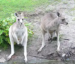 In addition to the pests noted above, vineyards in the Hunter Valley are usually grafted on phylloxera resistant rootstock to help keep the louse at bay. During the growing season kangaroos are frequent threats to the young buds and shoots of grapevines, requiring tall barb wire fences to keep the hopping creature out. Ever present nuisances near harvest time are the frequent birds that descend upon the area.[13]