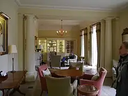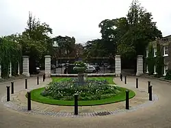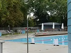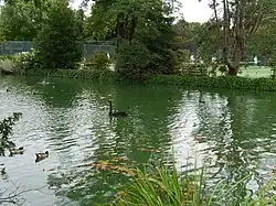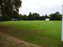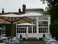 The Gun Club was formed in 1860 at the Hornsey Wood Tavern, which stood in what today is Finsbury Park in Harringay, London.[2] The creation of the park in 1867 forced a relocation and Frank Heathcote received the permission of Richard Naylor to promote live pigeon shooting at his Hurlingham estate.[3] His next step was the formation of the Hurlingham Club for this purpose and "as an agreeable country resort".[4] The club leased the estate from Naylor in 1869 and in 1874 acquired the land outright for £27,500.[5] The pigeon today forms part of the club's crest. Until 1905, clouds of pigeons were released in the summer from an enclosure near what is now a tennis pavilion.