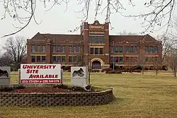 In 2011, the City of Huron voted to tear down the campus to make room for Central Park, which was to include a park and new swimming pool complex.[1] Demolition was started on September 19, 2011. Construction was due to start in early 2012, and the park to opened in 2013. As of 2021 all but a few buildings on the old campus was demolished: McDougal Residence Hall (1953), originally a women's dorm, was sold and converted into the Huron Area Senior Center in 1978; the city renovated and kept the Campus Center (1970) & Fine Arts Center (1973).[15]