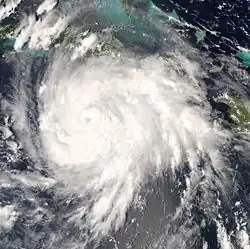 ![]() Gustav near peak intensity and approaching western Cuba on August 30 | |