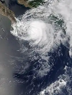 Hurricane Ignacio was the latest-forming first hurricane of a Pacific hurricane season since reliable satellite observation began in 1966. The ninth tropical storm of the 2003 Pacific hurricane season, Ignacio developed out of a tropical wave on August 22 a short distance off the coast of Mexico. It was initially predicted to track out to sea and remain a weak tropical storm, though it unexpectedly organized rapidly to attain peak winds of 105 mph (169 km/h) on August 24 while located a short distance southeast of southern Baja California Sur. Land interaction weakened Ignacio to an 80 mph (130 km/h) hurricane by the time it made landfall near La Paz, and it dissipated on August 27 in the central Baja California peninsula.