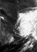 Tropical Storm Naomi while undergoing rapid intensification on September 11, 1968 while off the coast of Mexico. This picture was taken shortly after the system was given a name. | |