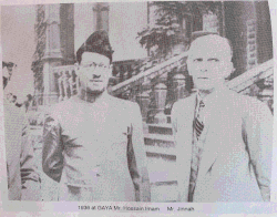 Hussain Imam was a prominent politician of Bihar. He was a member of the Constituent Assembly of India in 1946. One of the key members of the Pakistan Muslim league, Hussain played a key role in the Pakistan movement towards the country’s foundation, and remained one of Jinnah's closest friends.
