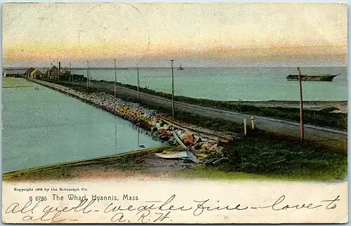 ![]() Hyannisport Wharf on an early-20th-century postcard | |||||