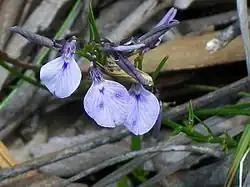 Hybanthus monopetalus, the slender violet-bush, is a common plant in the violet family. It is found in eastern Australia in dry eucalyptus woodland, often in sandstone or granite derived soils, where it is seen growing in relatively shady moist sites, surrounded by dry open country. It may reach 30 cm in height.[1] Flowers form on short racemes at the end of branches. The specific epithet monopetalus translates to "one petal".