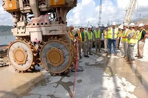 - Hydraulic cutter, which typically consists of two cutter wheels powered by a hydraulic motor, a slurry pump, and flaps to control its direction in case of deviation from the intended path.